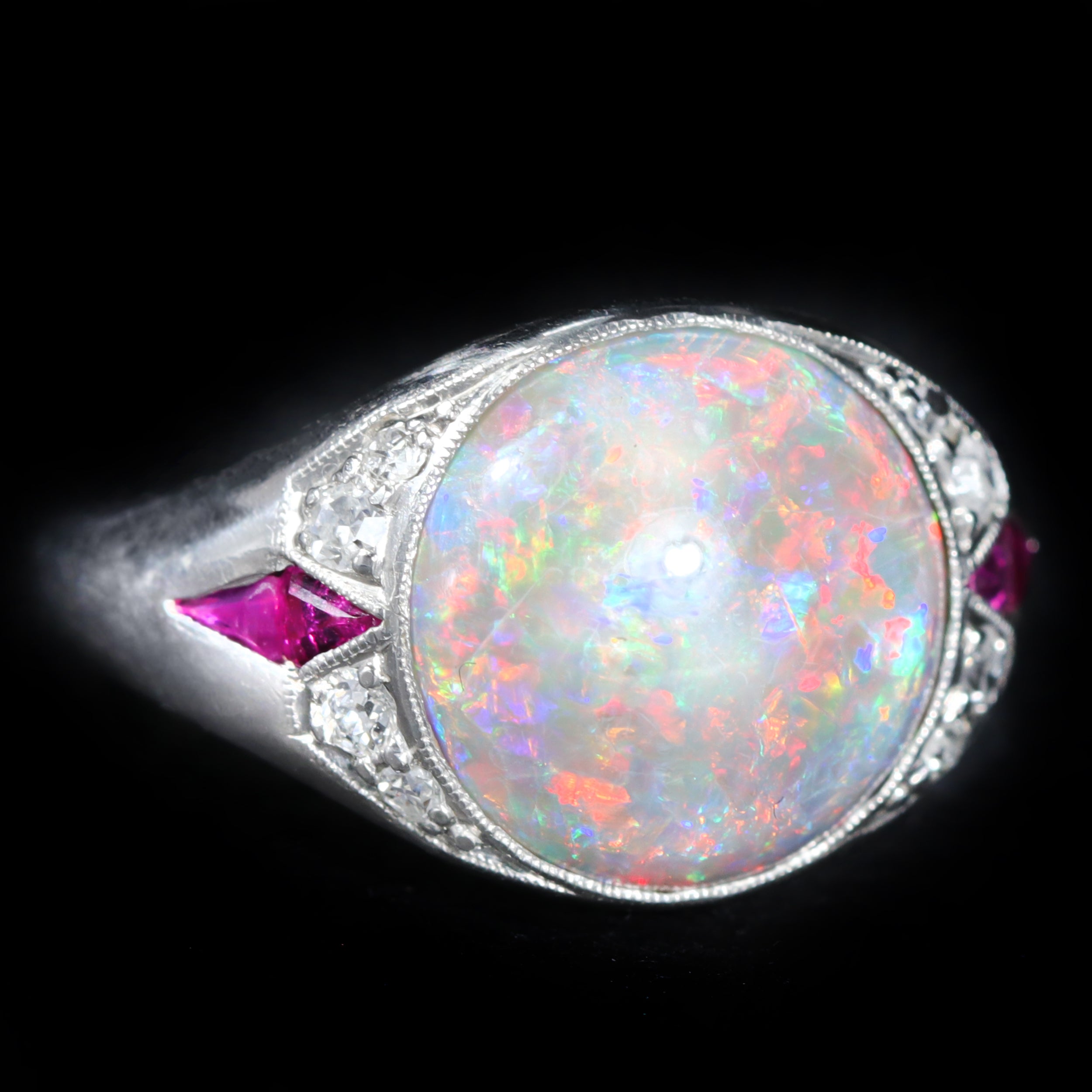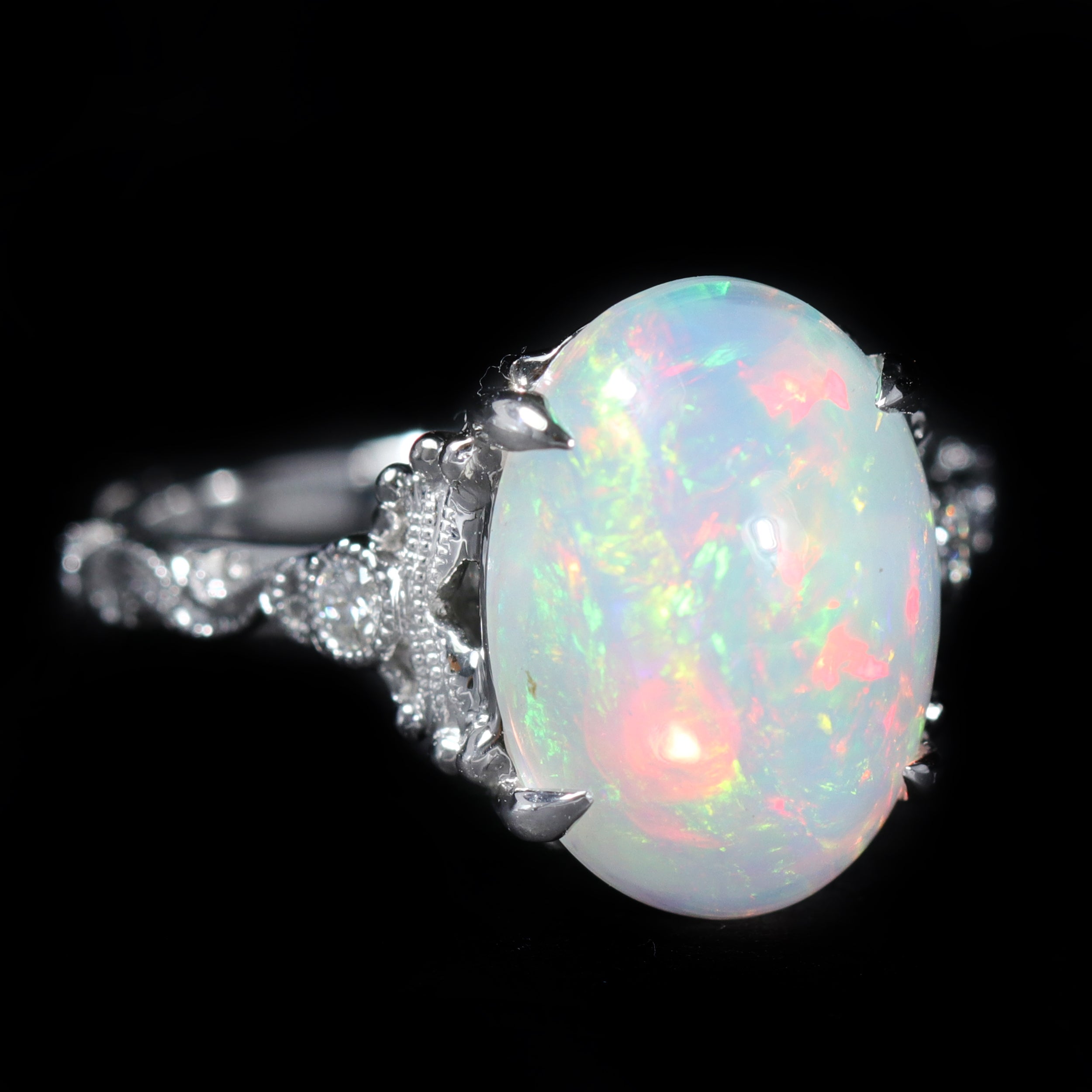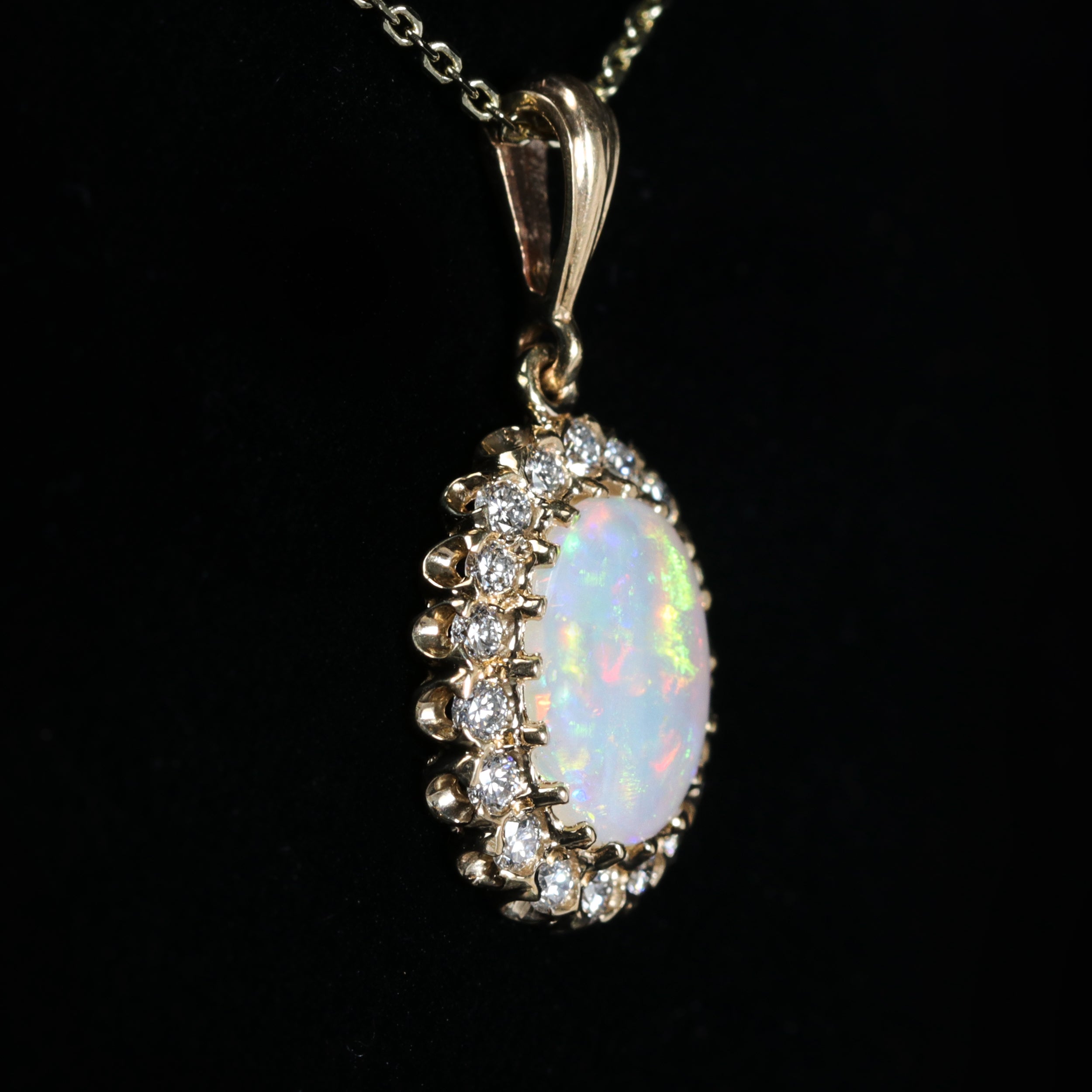 Explore our exquisite collection of opal jewelry, featuring rare finds from as early as the Victorian era. Fun fact: opals were considered the luckiest and most magical of all gemstones in the Middle Ages, believed to possess all the virtues of each gemstone whose color was represented in the opal's spectrum. Our selection includes delicate opal rings, elegant earrings, and intricate brooches and pendants that capture the beauty of this mesmerizing gemstone. Each piece showcases the mesmerizing play of colors unique to opals, making them a captivating addition to any jewelry collection.