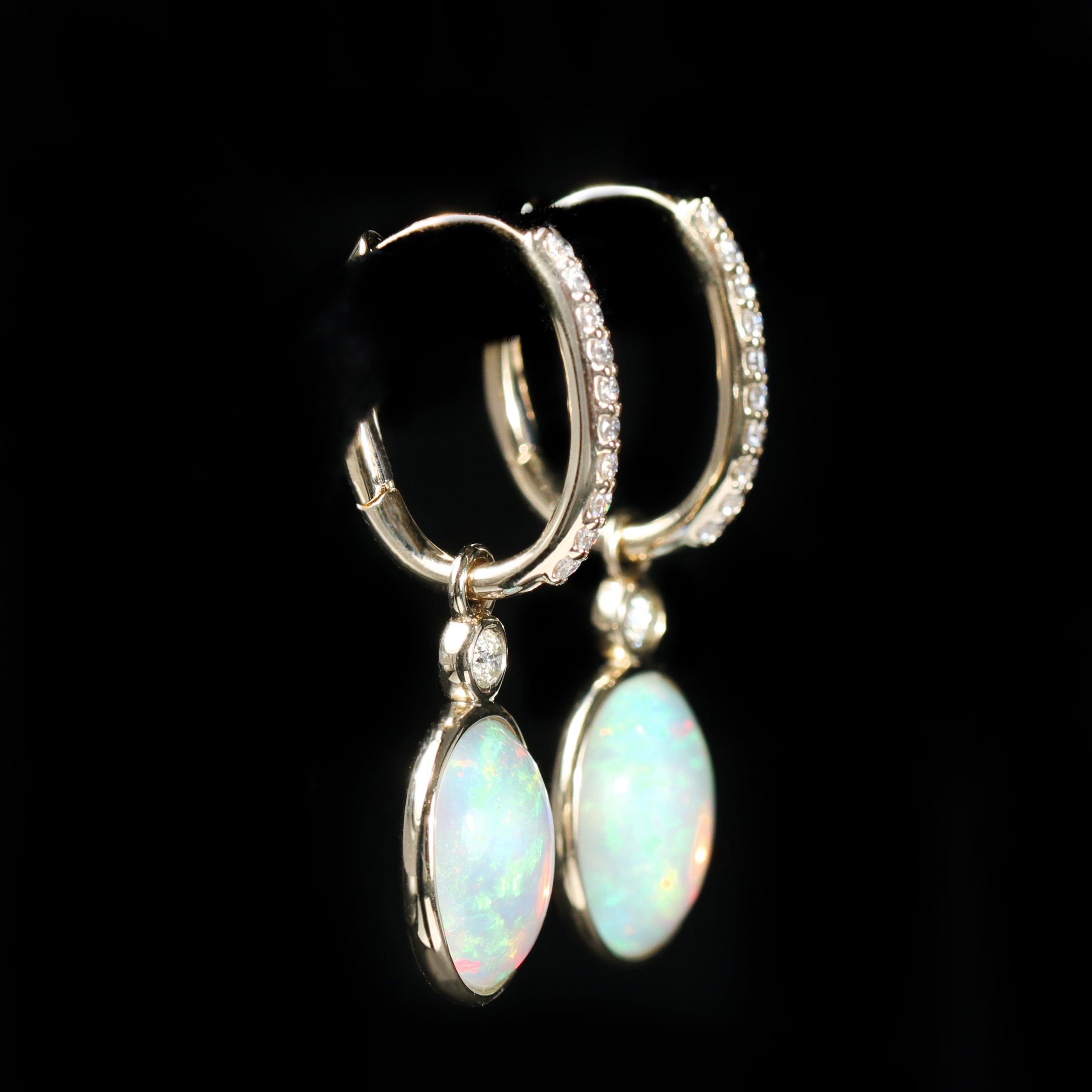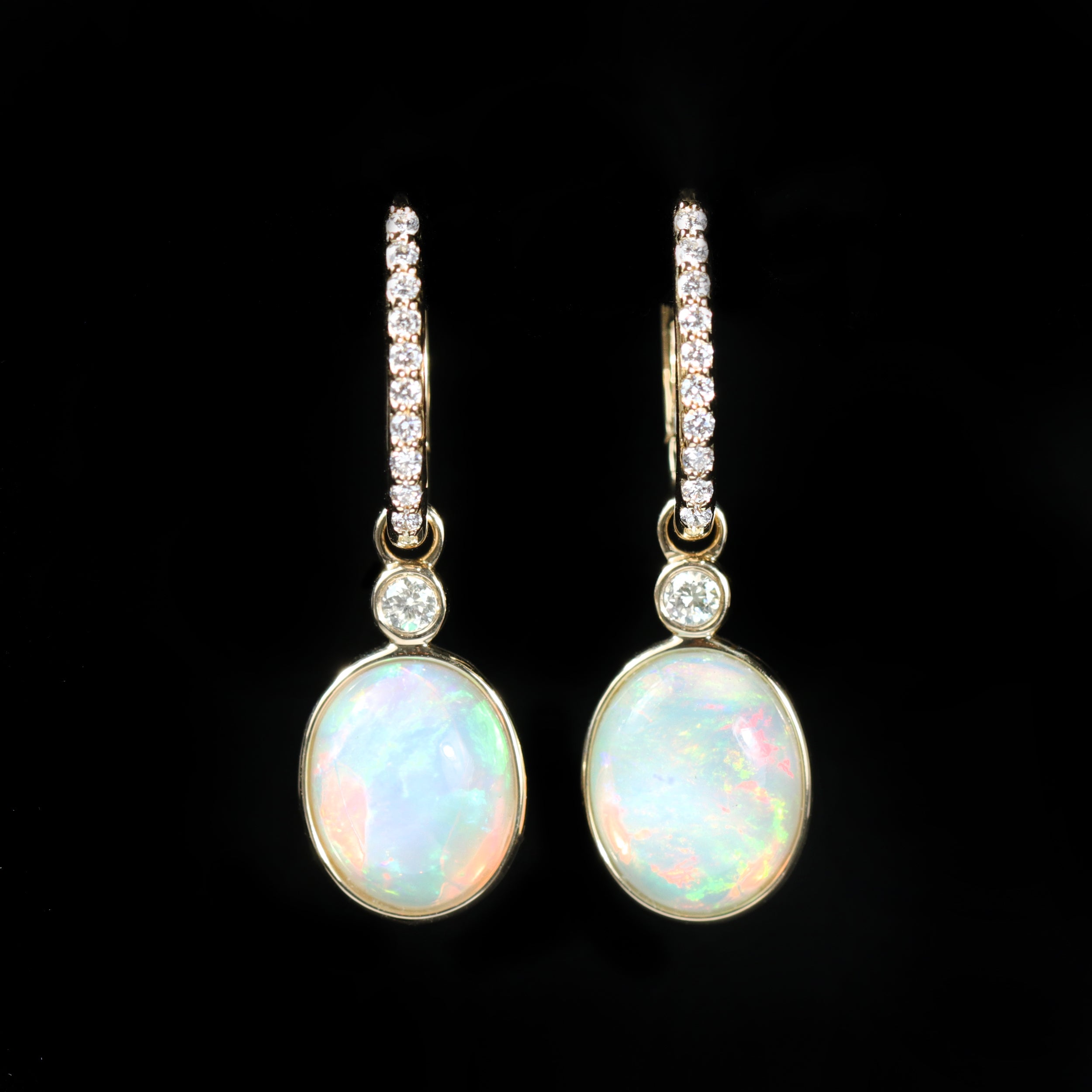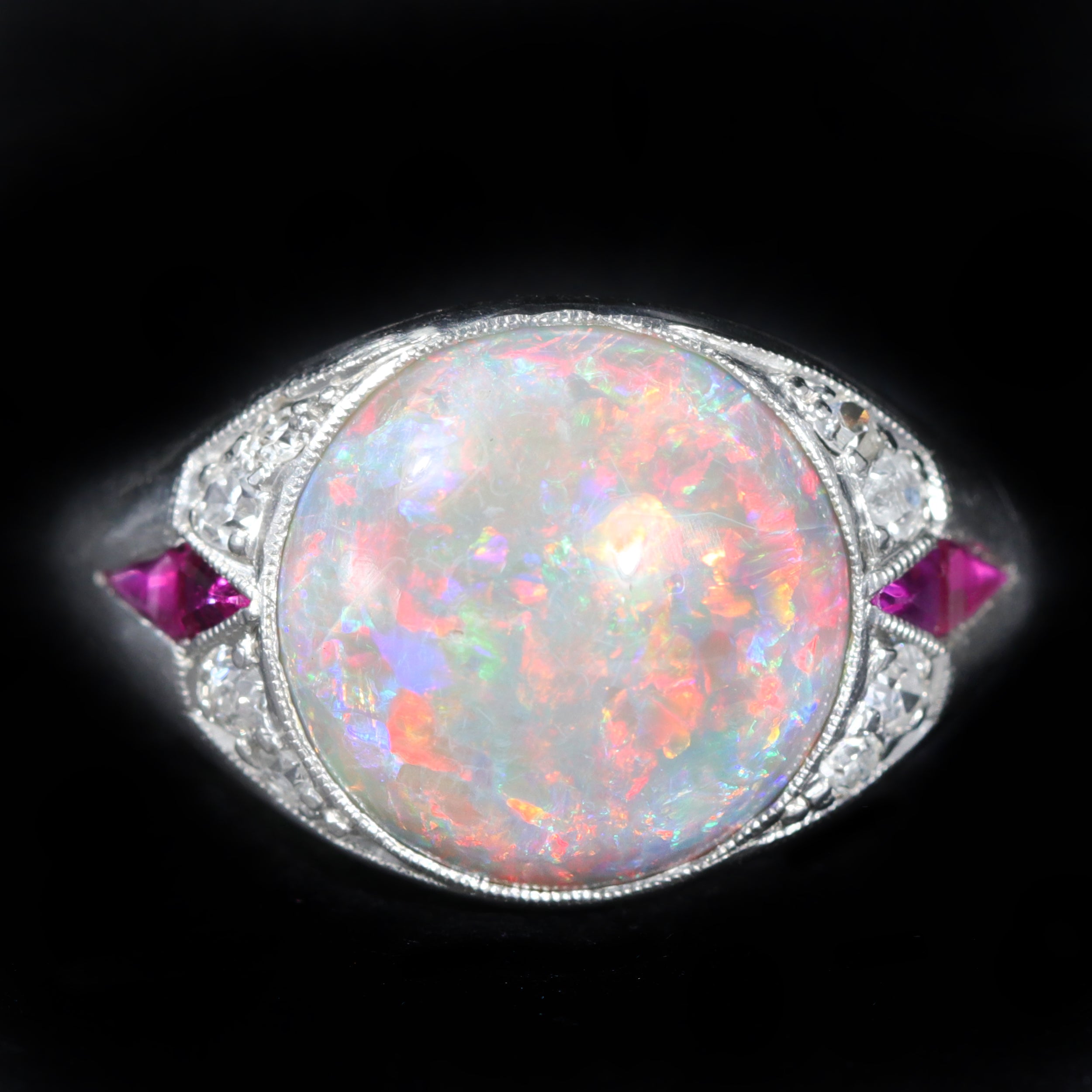 Explore our exquisite collection of opal jewelry, featuring rare finds from as early as the Victorian era. Fun fact: opals were considered the luckiest and most magical of all gemstones in the Middle Ages, believed to possess all the virtues of each gemstone whose color was represented in the opal's spectrum. Our selection includes delicate opal rings, elegant earrings, and intricate brooches and pendants that capture the beauty of this mesmerizing gemstone. Each piece showcases the mesmerizing play of colors unique to opals, making them a captivating addition to any jewelry collection.