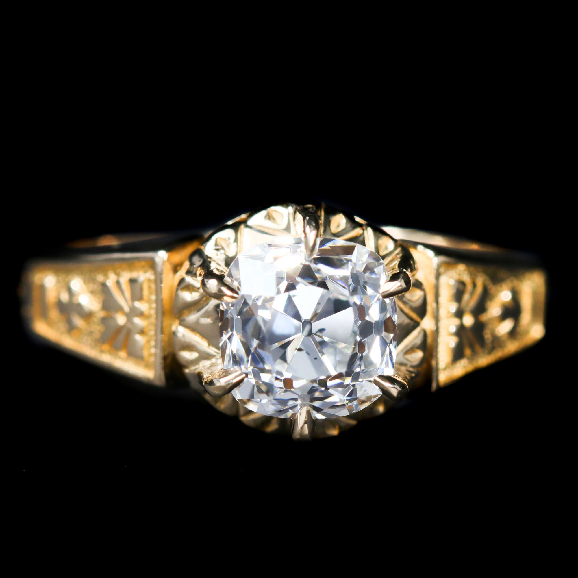 The Old Mine Cut originated in the 18th century and remained popular through the Georgian, Victorian, and early Edwardian periods. Often referred to as "candlelight diamonds" due to their exceptional sparkle in lower lighting, these stones have a fascinating history and were meticulously cut by hand, creating the larger facets and distinctive shapes that make them highly coveted today.
