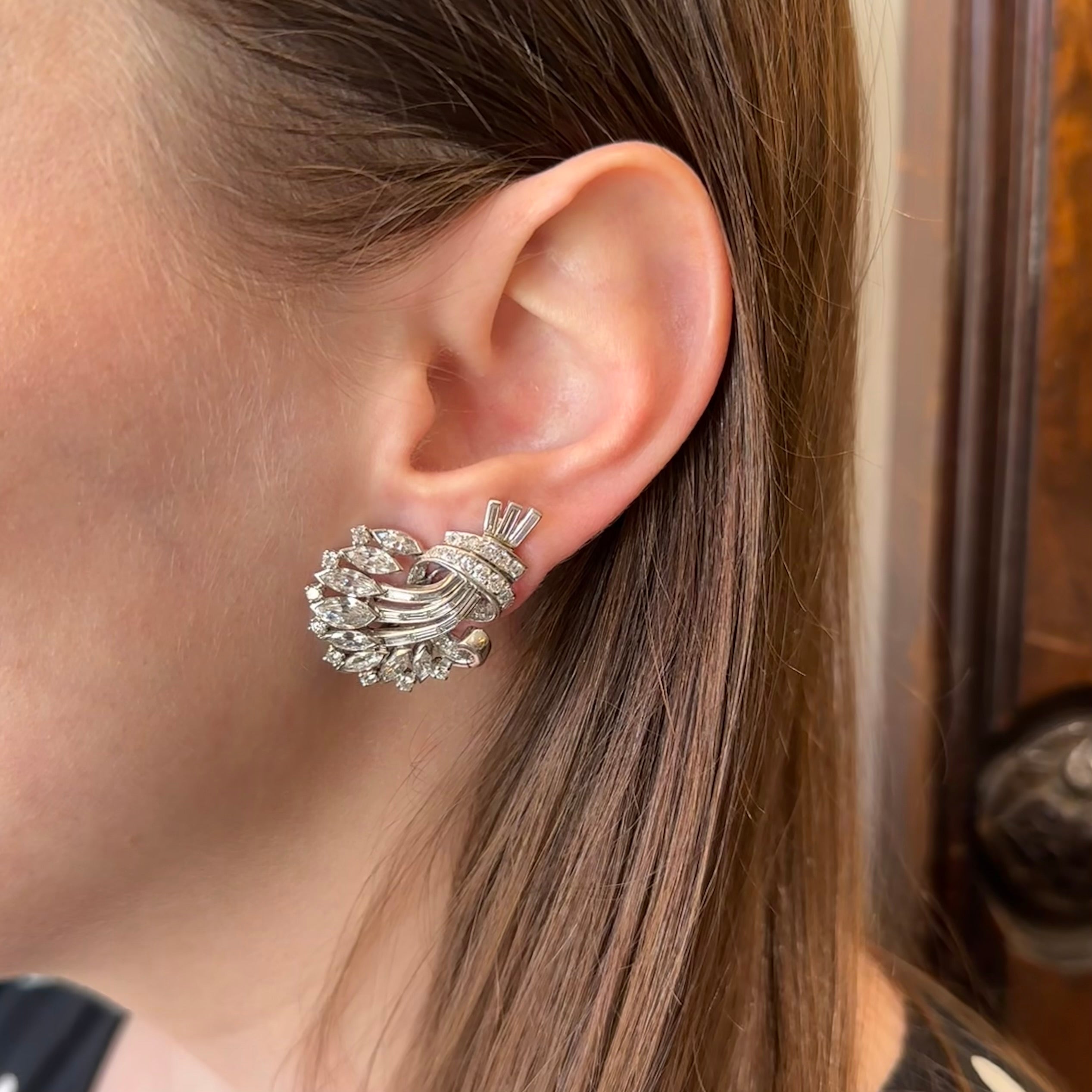 1950s 14K White Gold 6.00 CTW Diamond Earrings