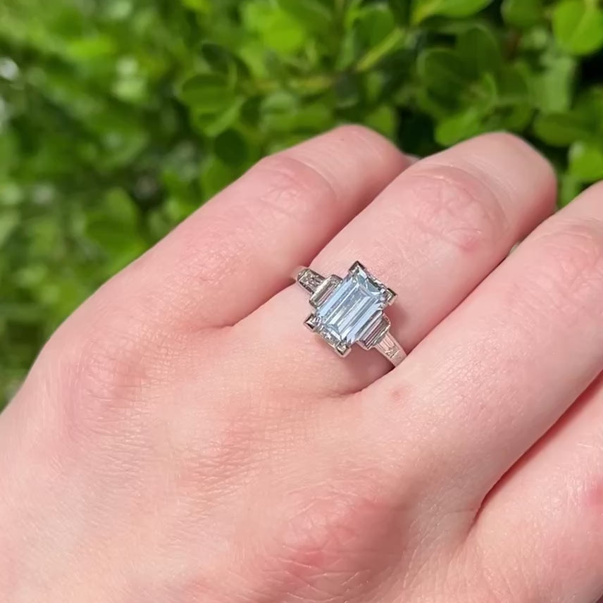 Art Deco 2.27 Carat Baguette Cut Diamond Engagement Ring - Walton's Jewelry