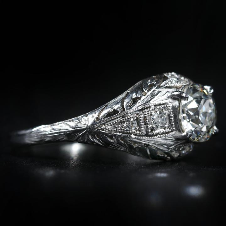 Art Deco Platinum 0.92 Carat Old European Cut Diamond Ring