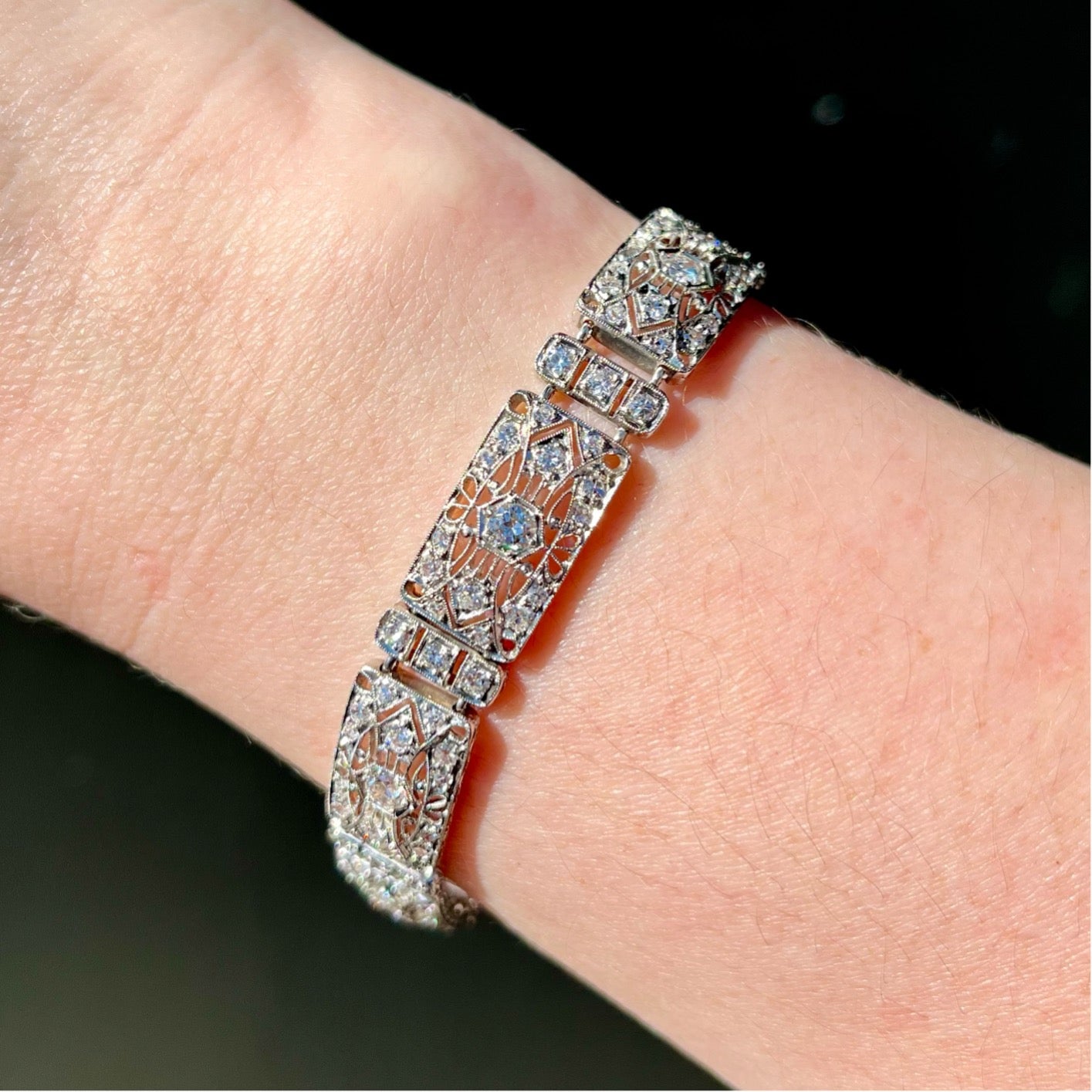 Art Deco Platinum 5.00 CTW Diamond Filigree Bracelet