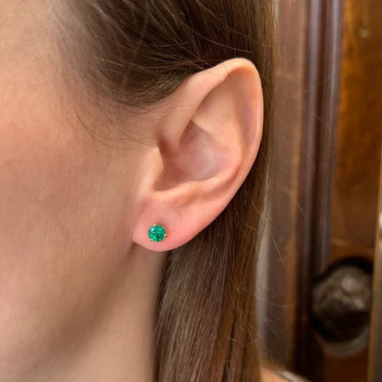• Stones: 2 Round Cut Emeralds (approx. 1.32 carats total weight)