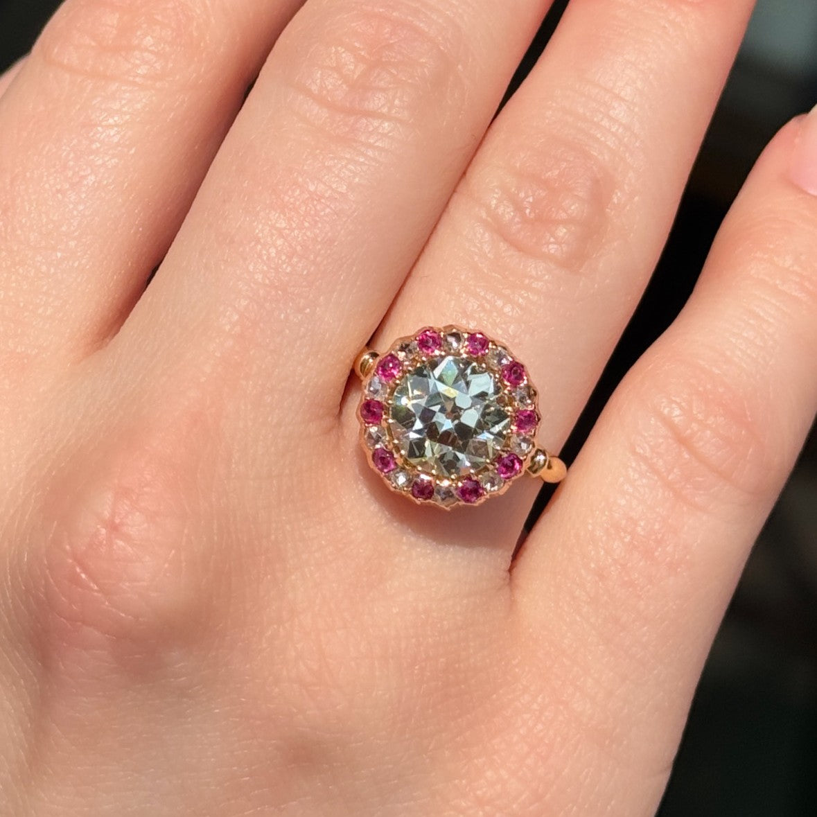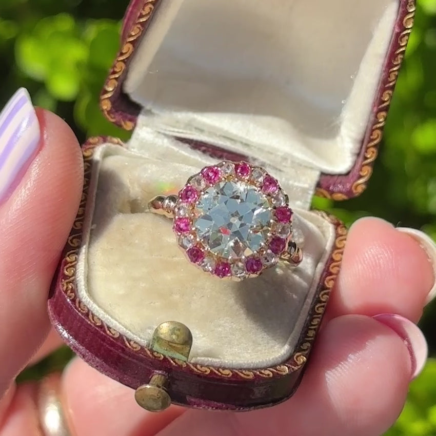 Estate 2.74 Carat Old European Cut Diamond and Ruby Engagement Ring