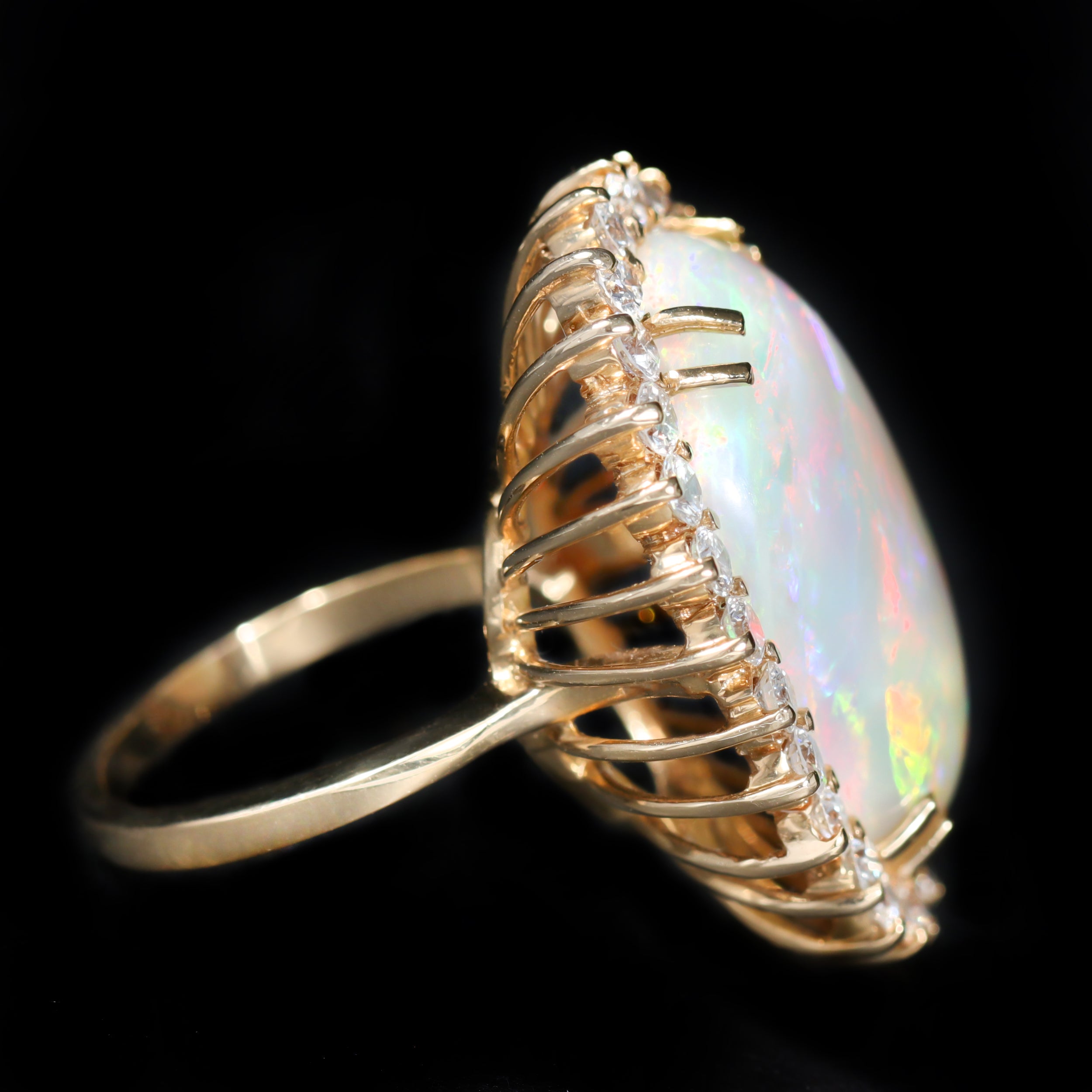18K Yellow Gold 13.63 Carat Opal and Diamond Ring