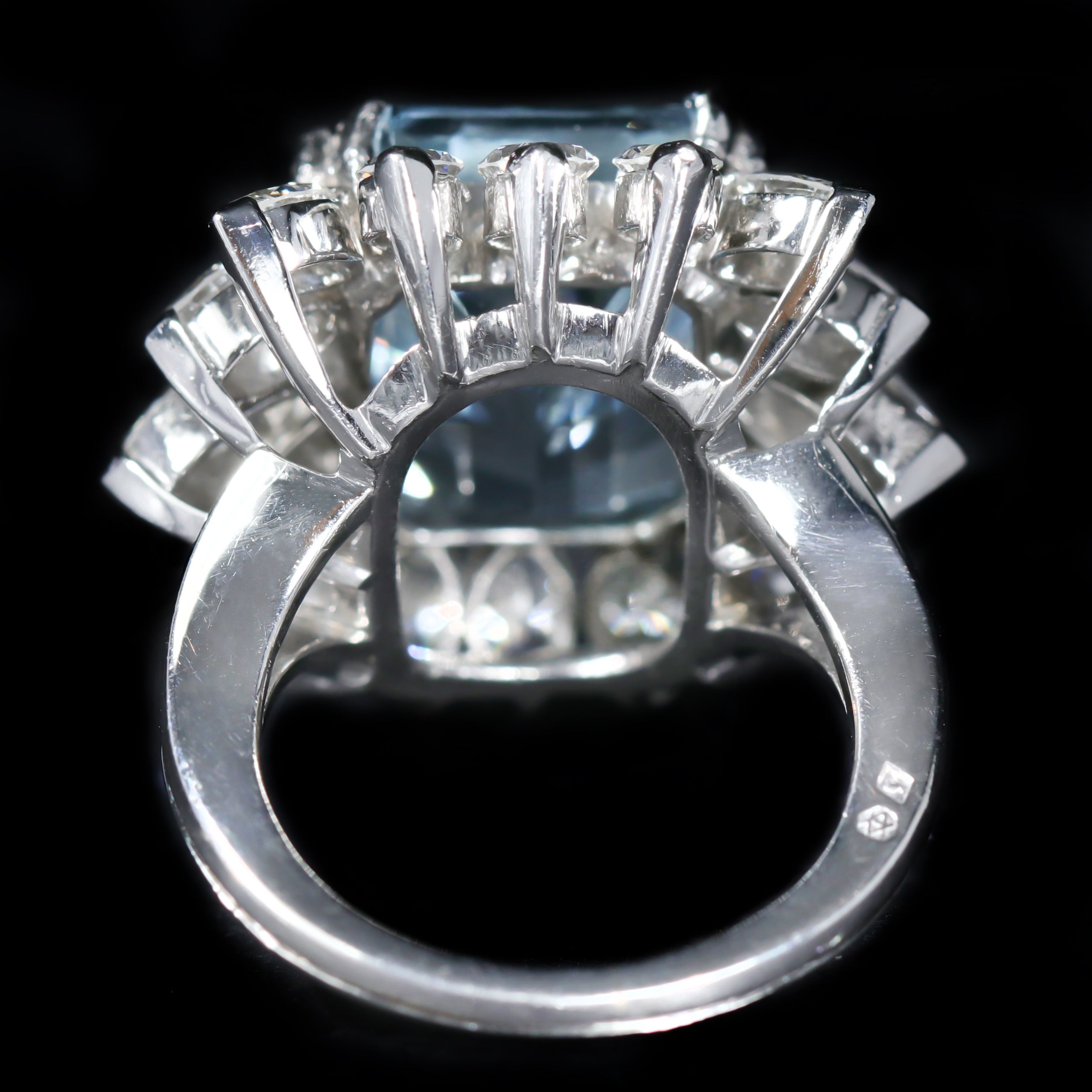 1950's Platinum 9.00 Carat Aquamarine and Diamond Ring