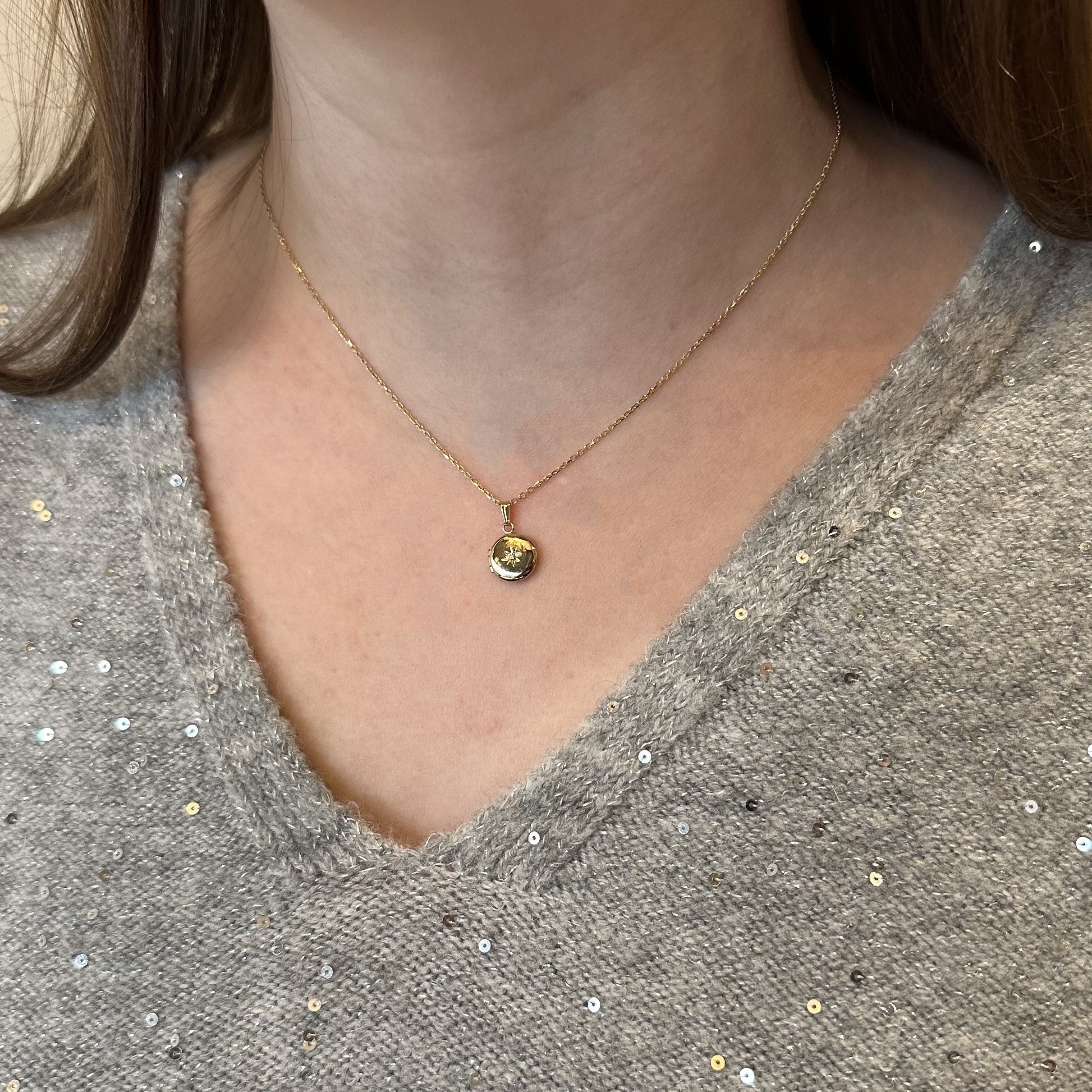 14K Yellow Gold Mini Round Diamond Locket