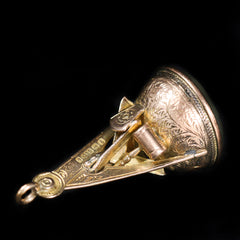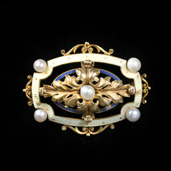Art Deco 14k yellow gold, pearl, and enamel pin. This exquisite piece features the iconic shield logo, representing the National Life and Accident Insurance Company motto "We Shield Millions," meticulously crafted with enamel and adorned with seed pearls, all set in 14K yellow gold. Founded in 1900 as the National Sick and Accident Association, the company later reorganized as the National Life and Accident Insurance Company. With its headquarters in Nashville, Tennessee, National Life became a prominent figure in the insurance industry, serving millions. As a nod to its legacy, this pin serves as a timeless reminder of National Life's enduring impact on the community. Its association with WSM, the radio station owned by the insurance company and home to the Grand Ole Opry, further underscores its significance in Tennessee's cultural landscape.