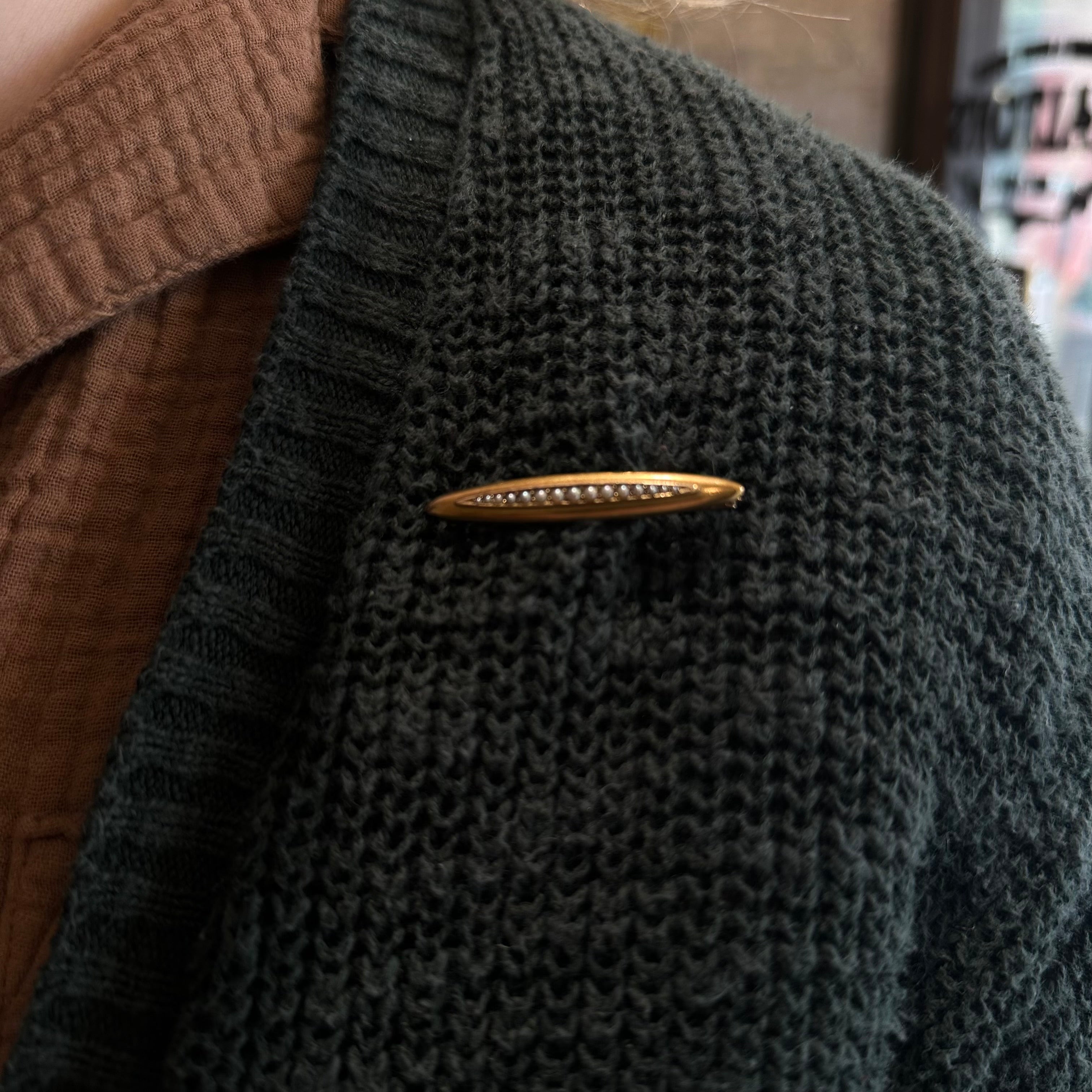 Victorian 14k yellow gold and pearl pin. In this delightful Victorian bar pin, a lovely row of lustrous seed pearls are framed in this beautifully burnished navette-shaped frame.