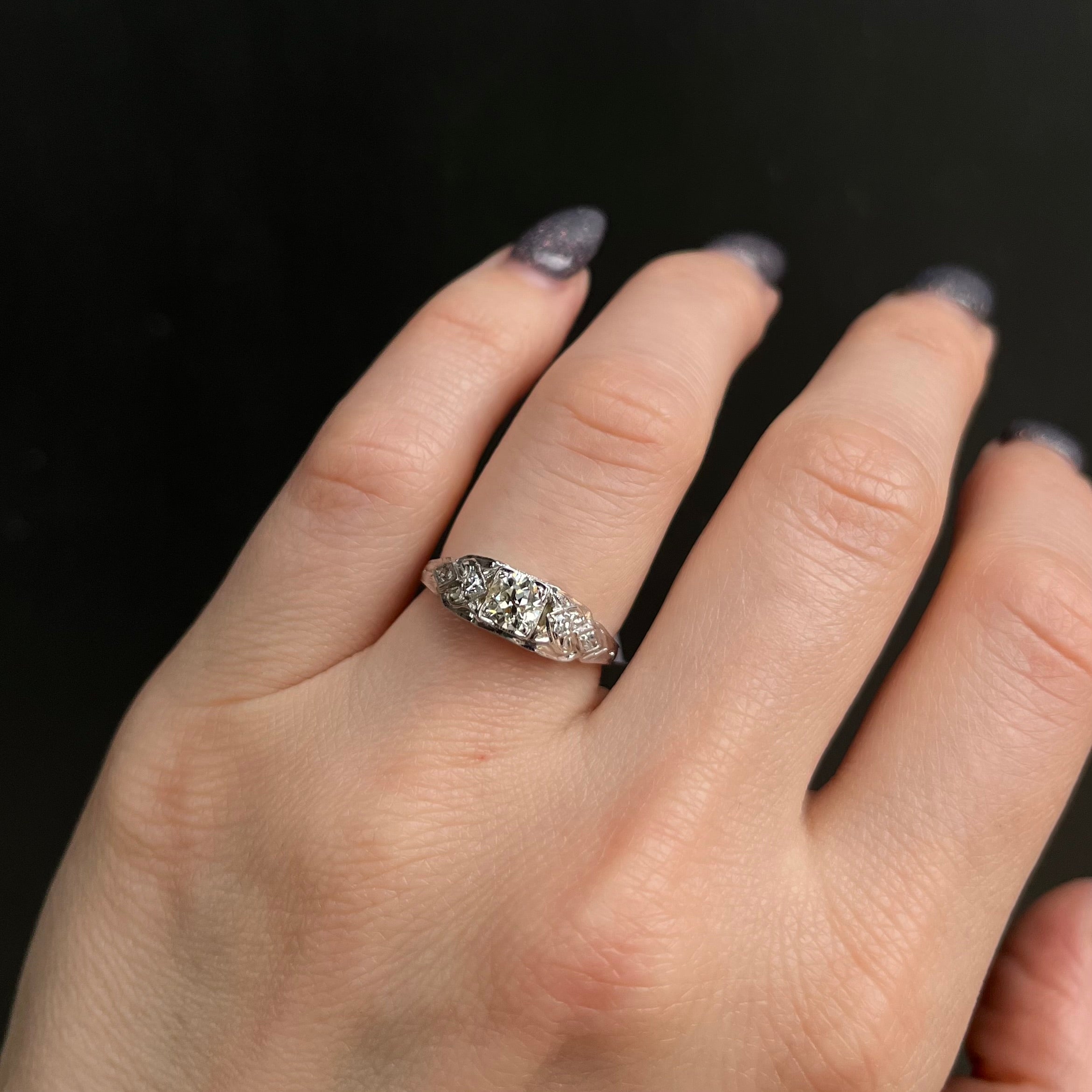 Art Deco 0.50 Carat Old European Cut Diamond Engagement Ring