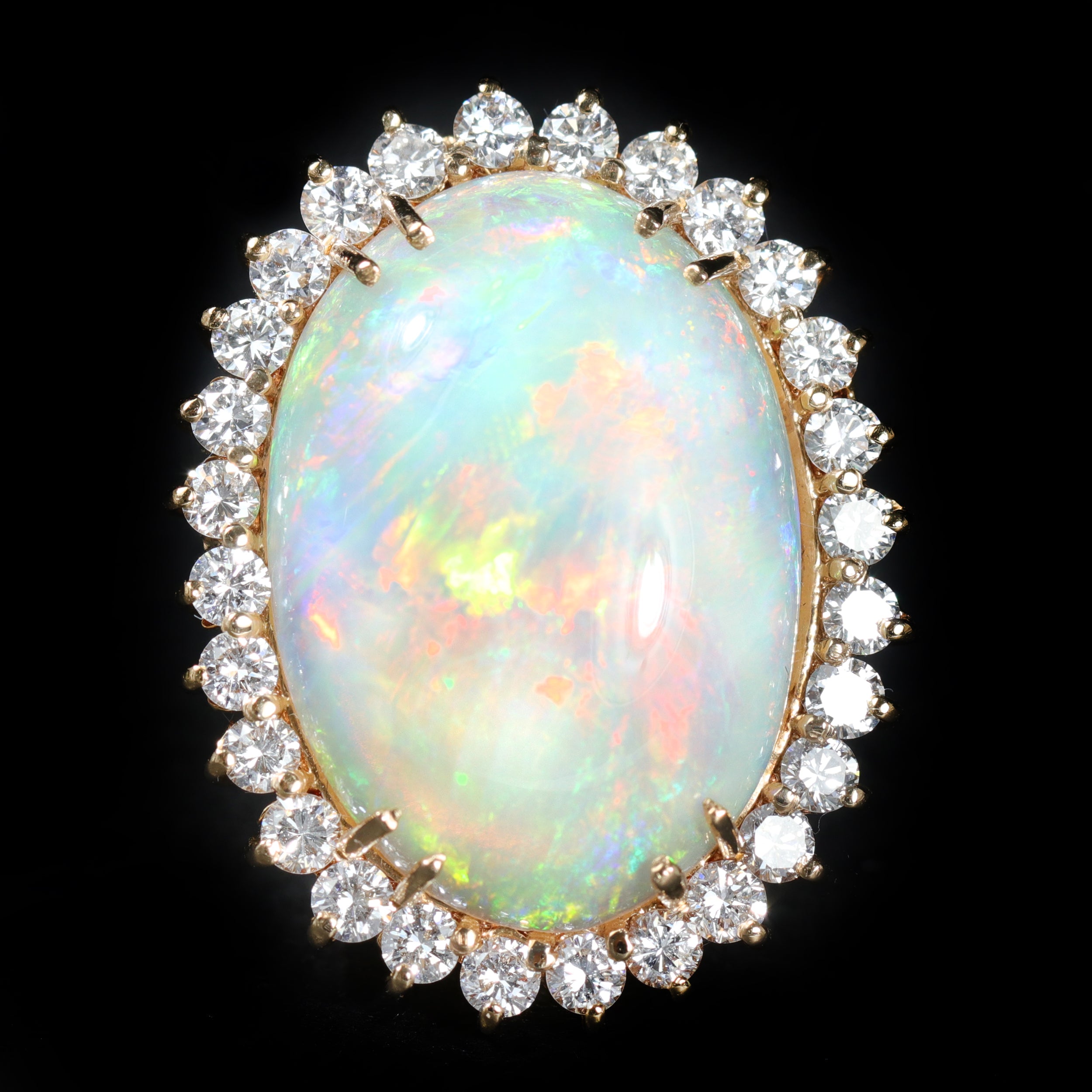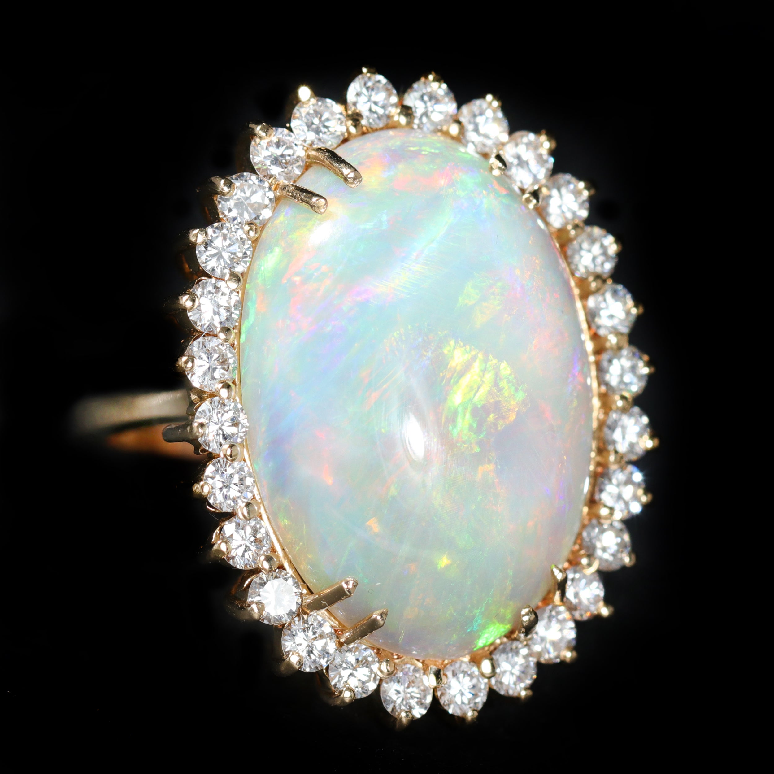 Explore our exquisite collection of opal jewelry, featuring rare finds from as early as the Victorian era. Fun fact: opals were considered the luckiest and most magical of all gemstones in the Middle Ages, believed to possess all the virtues of each gemstone whose color was represented in the opal's spectrum. Our selection includes delicate opal rings, elegant earrings, and intricate brooches and pendants that capture the beauty of this mesmerizing gemstone. Each piece showcases the mesmerizing play of colors unique to opals, making them a captivating addition to any jewelry collection.