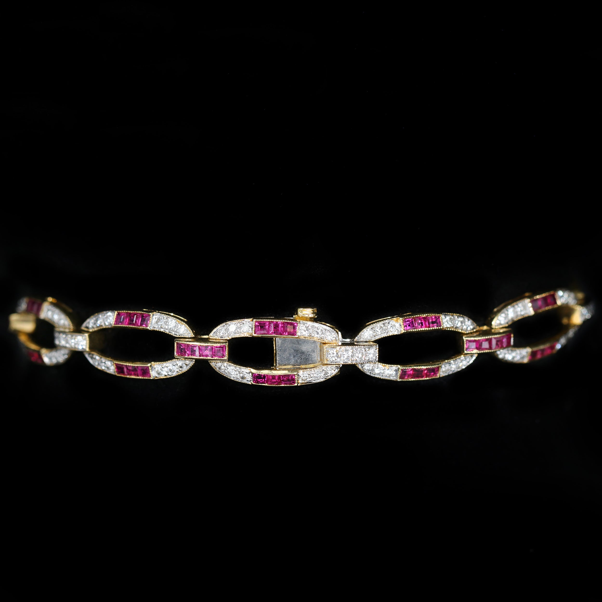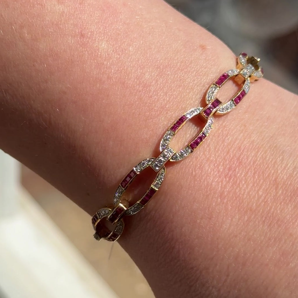 Mid Century 4.00 CTW Ruby and Diamond Link Bracelet - Walton's Jewelry