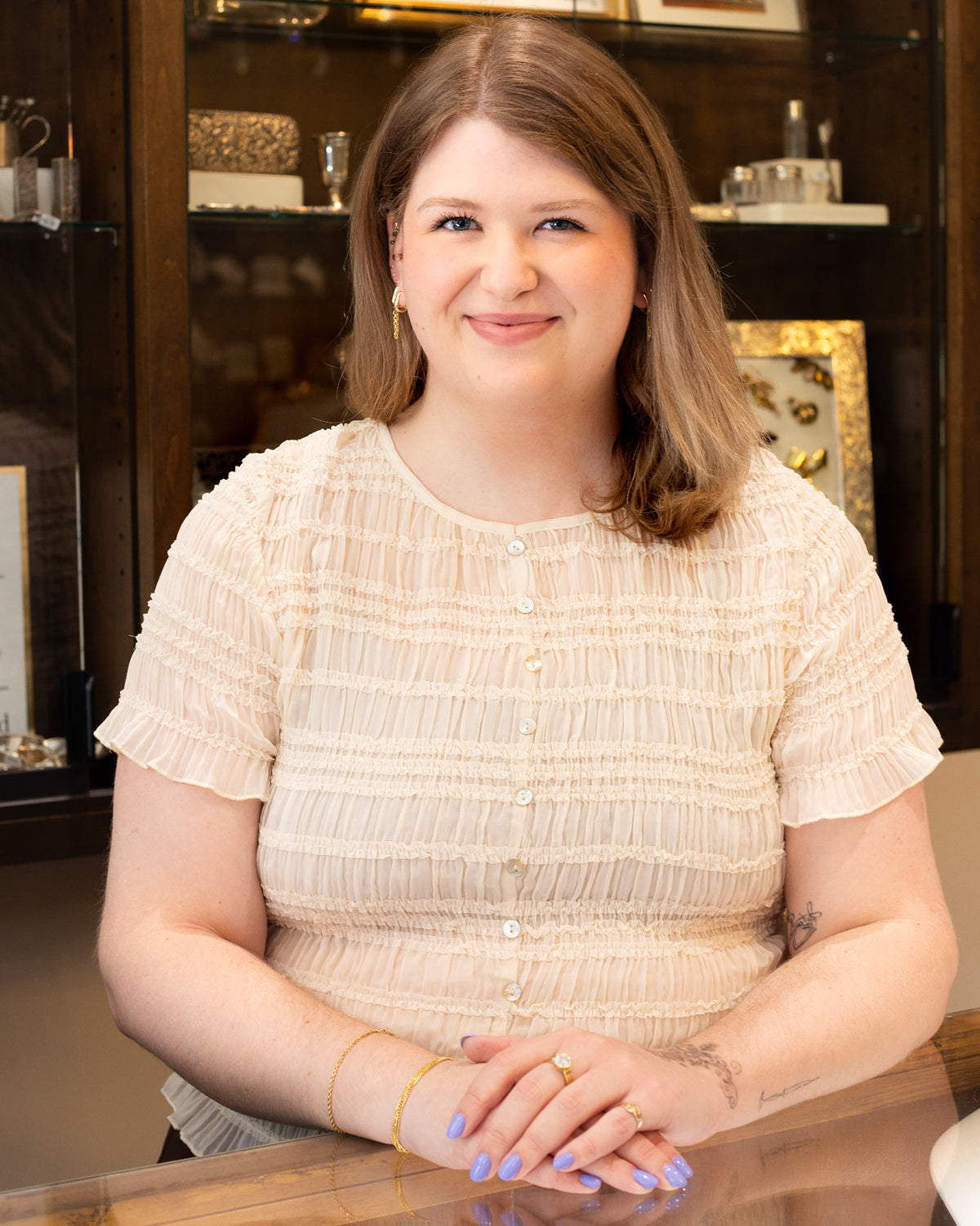 A Franklin native, Claire joined Walton's Jewelry in 2018. She brings deep expertise in antique jewelry, with a special passion for historical gems and the symbolism behind pieces like Memento Mori and Georgian era designs. Known for her extensive knowledge and warm, personalized service, Claire helps each client find something truly meaningful.