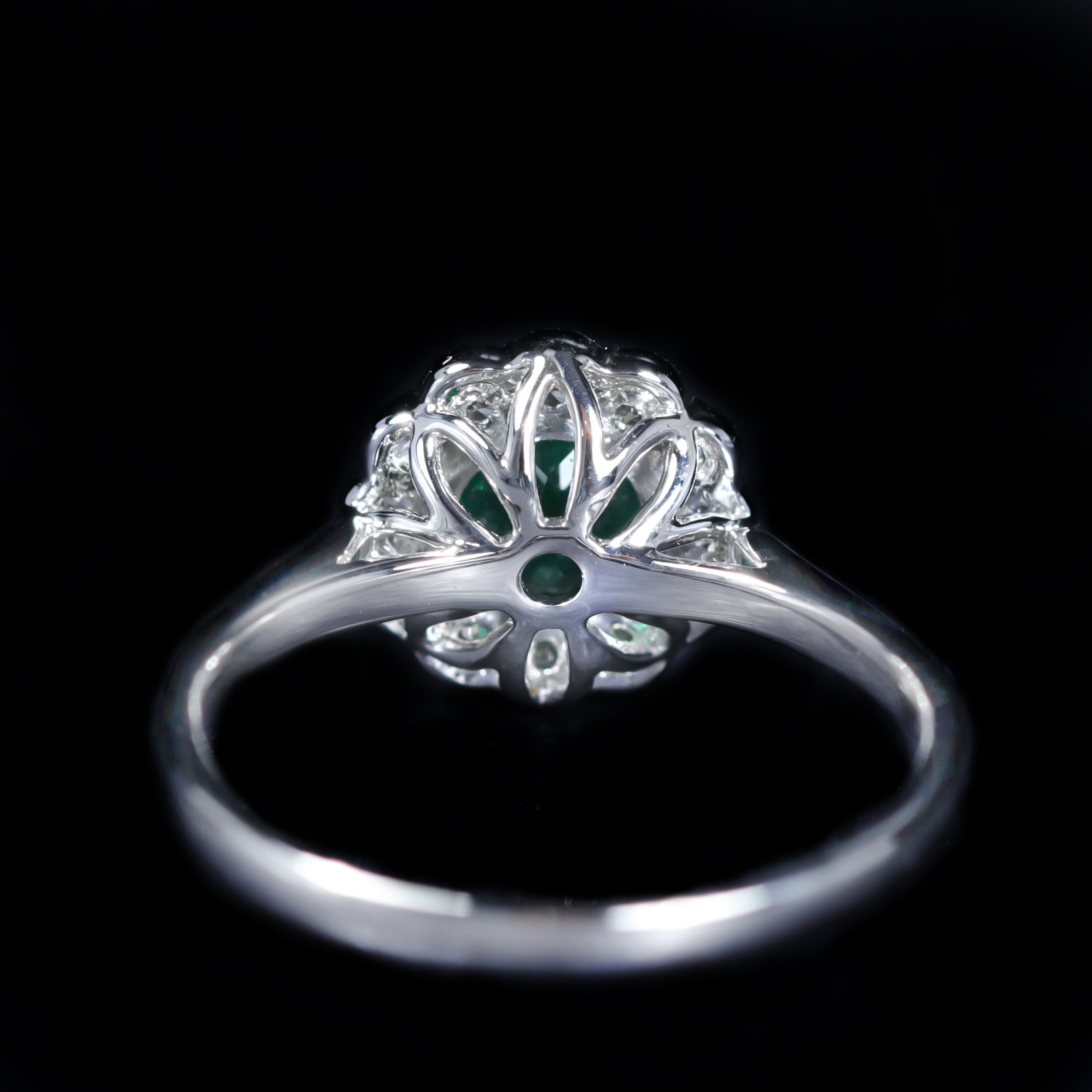 - Center Gem Details: 1 Round Cut Emerald (approx. 0.78 carat)