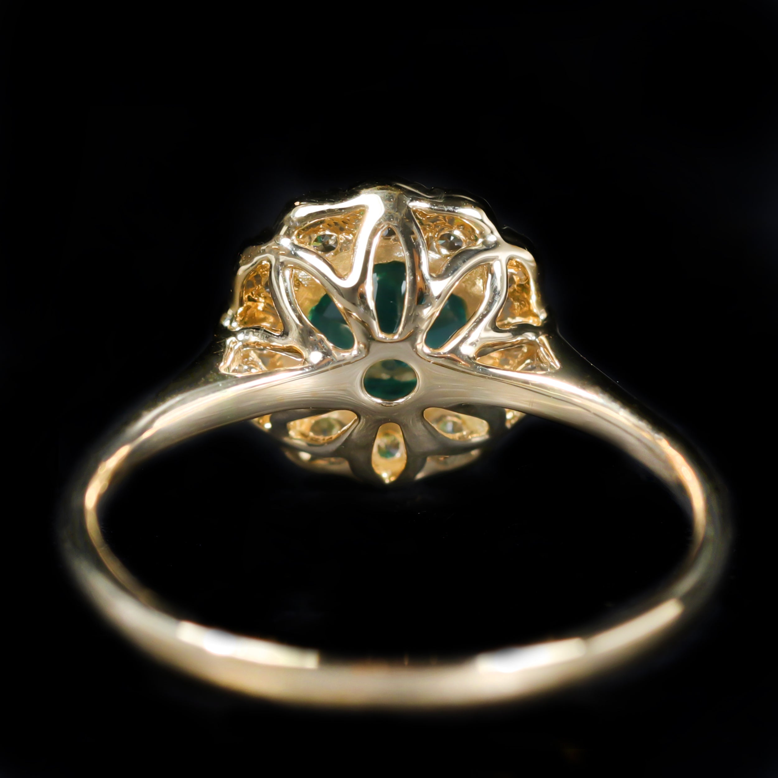 - Center Gem Details: 1 Round Cut Emerald (approx. 0.87 carat)