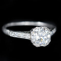 - Center Gem Details: 5 Old European Cut Diamonds (approx. 0.60 carats total weight, VS2 clarity, I color)