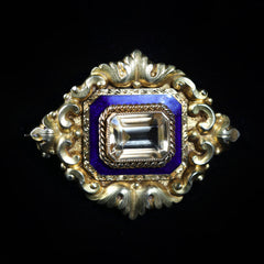 Art Nouveau 14k Yellow Gold Pearl and Enamel Brooch